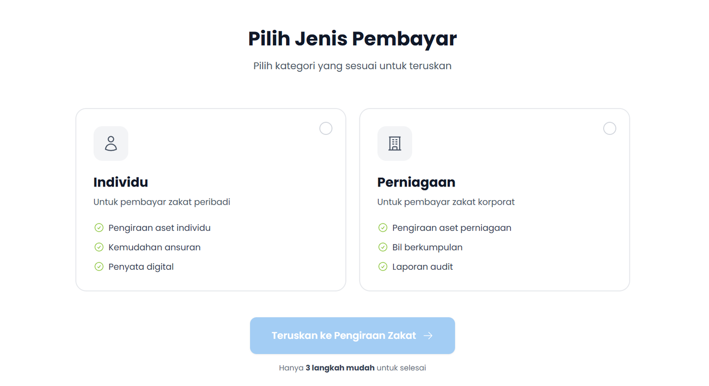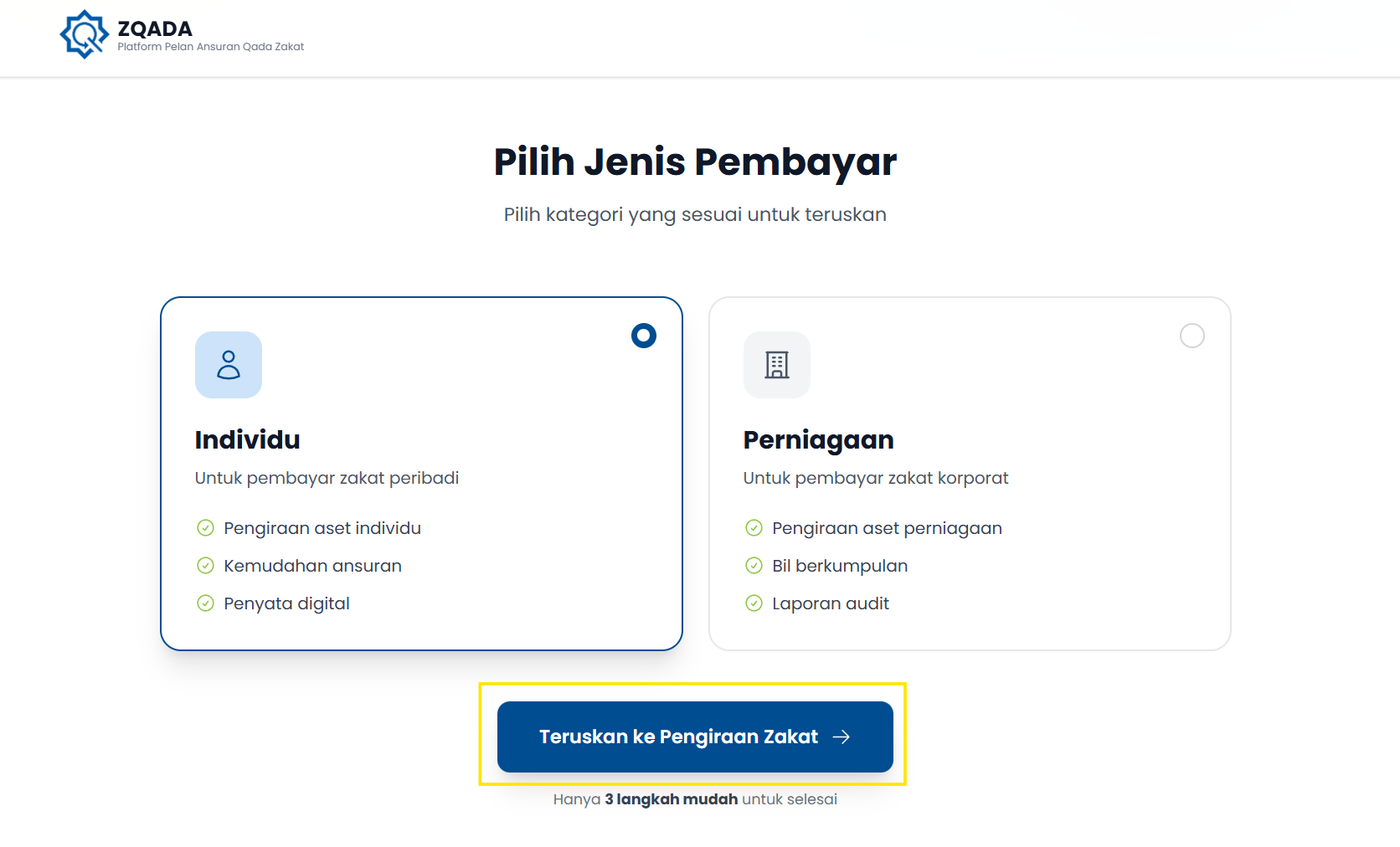Langkah 2: Pilih Jenis Pembayar (Individu/Perniagaan).
