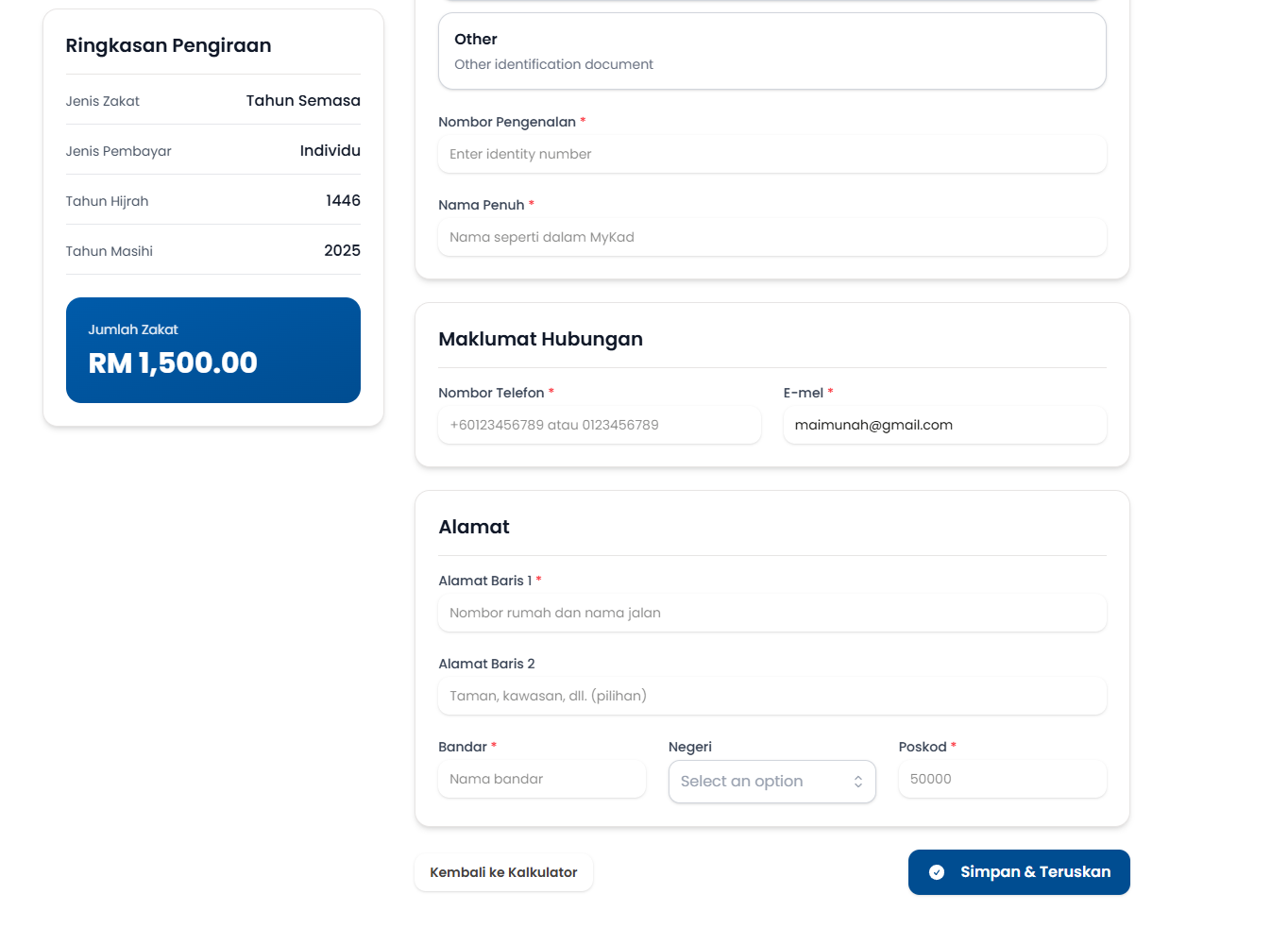 Langkah 2: Masukkan data yang diperlukan pada ruangan yang disediakan.