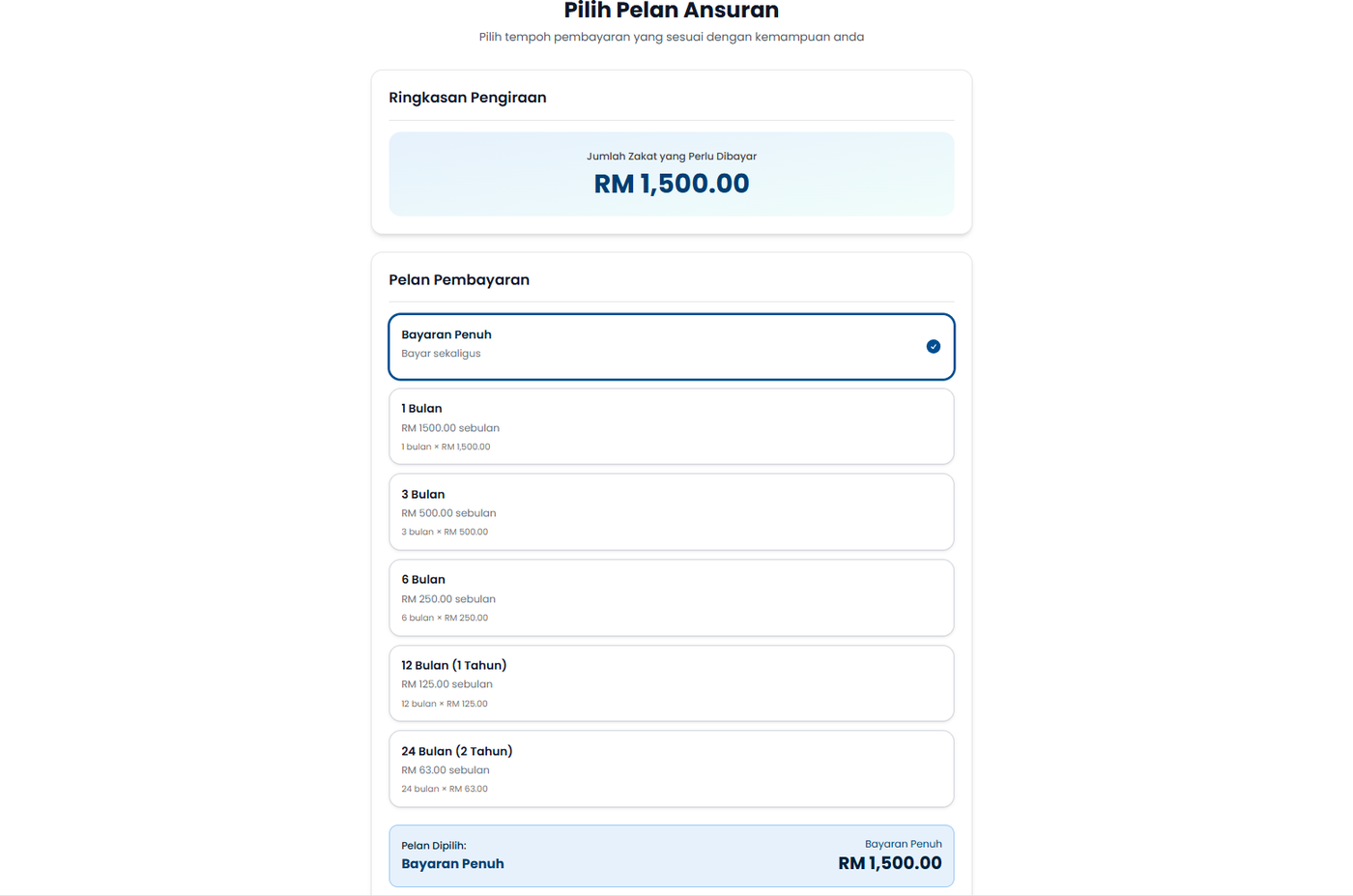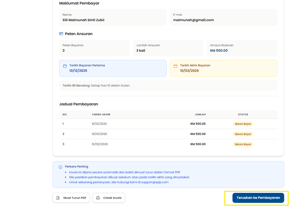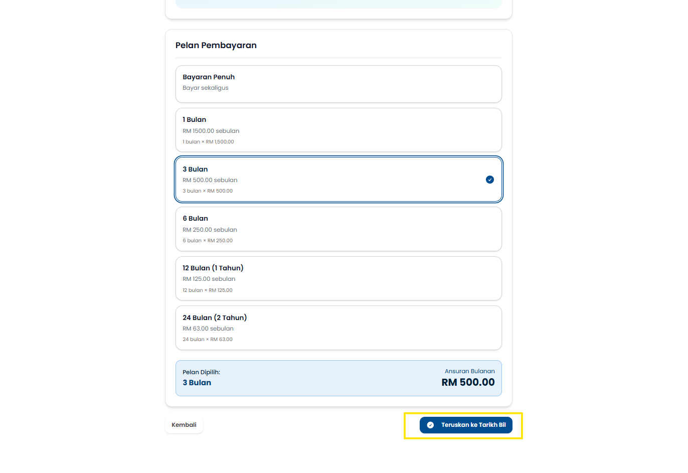 Langkah 4: Pilih Pilihan Pelan Ansuran Bulanan sekiranya perlu atau teruskan dengan Bayaran Penuh.