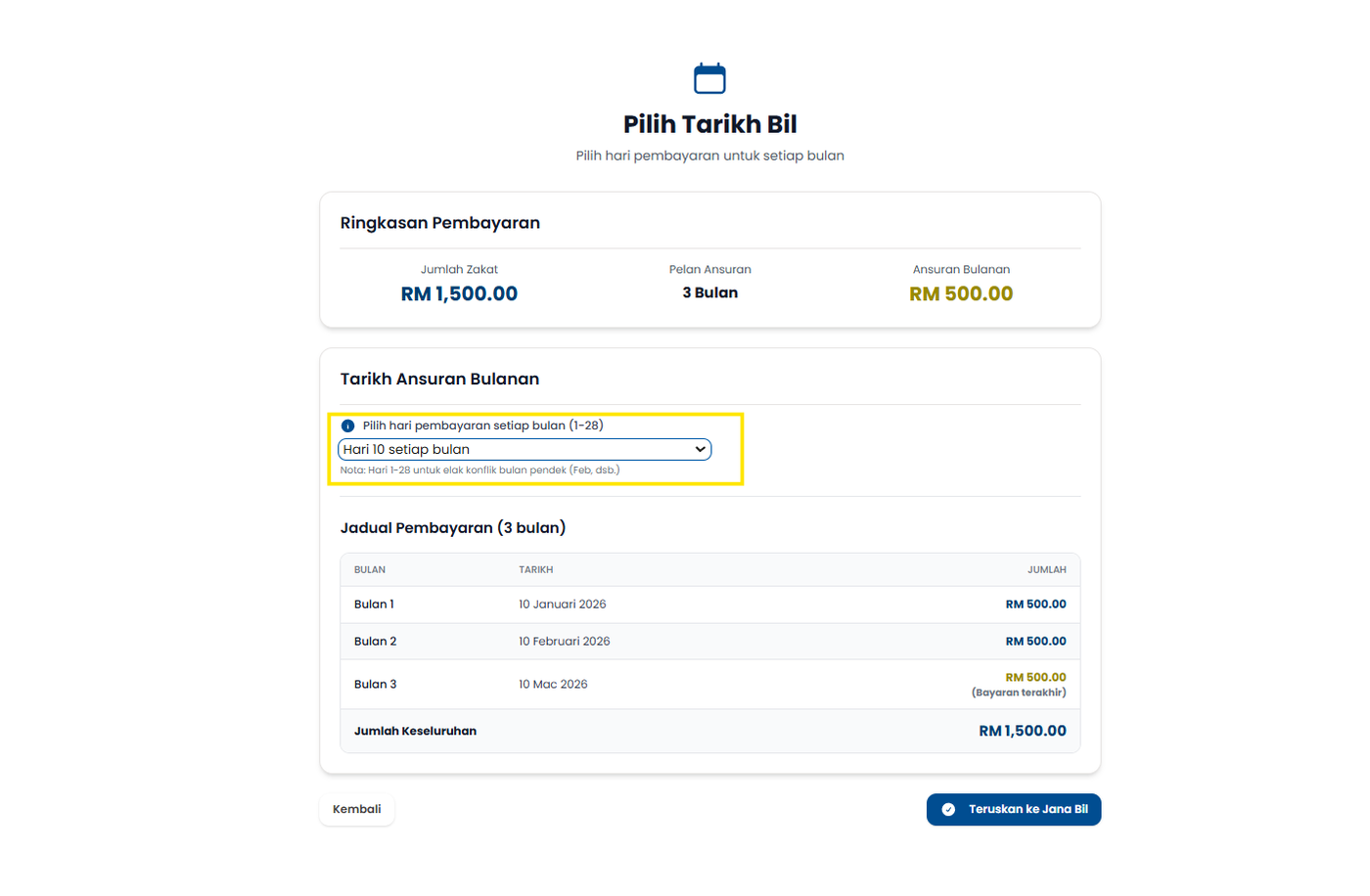 Langkah 6: Pilih tarikh hari pembayaran untuk setiap bulan.