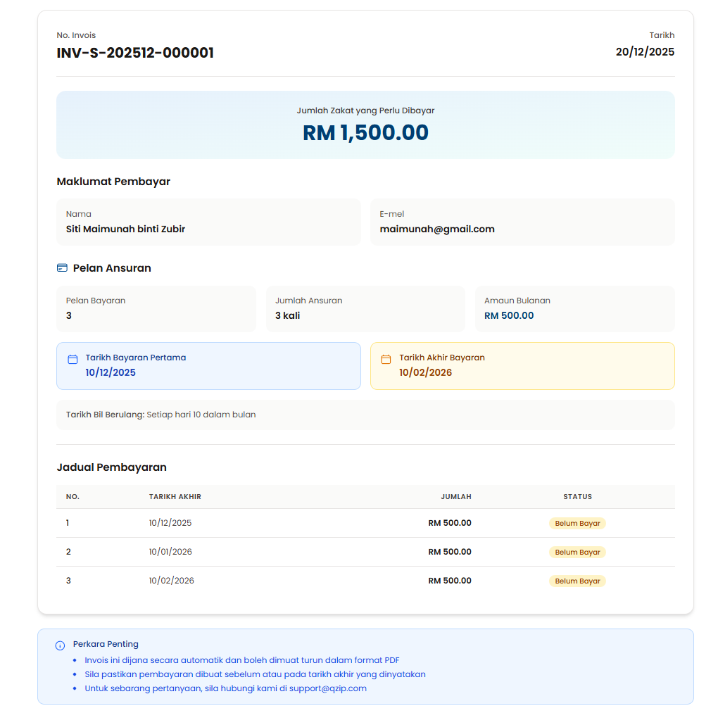 Langkah 8: Maklumat bil yang telah dijana akan dipaparkan seperti berikut.