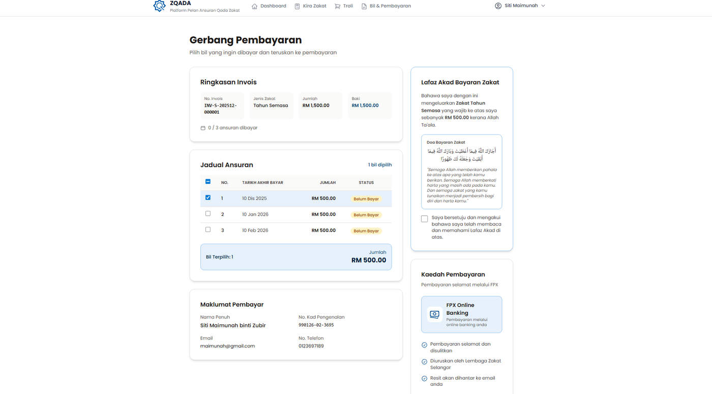 Langkah 9: Sistem akan menunjukkan skrin Gerbang Pembayaran.